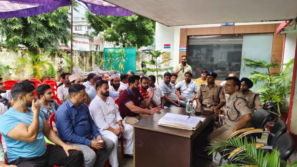रामनगर। इस्लाम धर्म के पैगम्बर हजरत मुहम्मद साहब के जन्मदिवस के उपलक्ष्य में आगामी शुक्रवार को मनाये जाने वाले बारह रब्बीउल (जुलूसे मोहम्मदी) के पर्व को लेकर कोतवाली में अमन कमेटी की बैठक सम्पन्न हुयी। उपजिलाधिकारी प्रमोद कुमार की अध्यक्षता व कोतवाल अरुण कुमार सैनी के संचालन में सम्पन्न हुई पीस कमेटी की बैठक में इस पर्व को लेकर गुरुवार की रात्रि सजावट व शुक्रवार को जुलूसे मोहम्मदी को लेकर वक्ताओं ने बिजली, पानी, ट्रेफिक व्यवस्था, साफ-सफाई को लेकर अपने-2 सुझाव दिए। इस अवसर पर शुक्रवार की शाम को पायते वाली रामलीला के झंडे की शोभायात्रा को लेकर भी विचार-विमर्श किया गया। बैठक में एसडीएम श्री कुमार ने सभी क्षेत्रवासियों से उक्त त्योहार को आपसी सौहार्द के मनाये जाने की बात की। कोतवाल श्री सैनी ने कहा कि सुरक्षा के व्यापक इंतजाम किये गये है व अराजक तत्वों पर कड़ी नजर रखी जायेगी। बैठक में एलआईयू इंचार्ज महेंद्र नेगी, स्पेशल ब्रांच एसआई शेर बहादुर, एसआई जोगा सिंह, एसआई सादिक हुसैन, जल संस्थान के जेई शीशपाल सिंह, विधुत विभाग के हरीश फर्त्याल, व्यापार मंडलाध्यक्ष दिनेश चंद्रा, जुलूसे मोहम्मदी के सदर शकील खान, सभासद भुवन शर्मा, सभासद शिवि अग्रवाल, सभासद मो अजमल, सभासद पारस गोला, सभासद राहुल रावत, मो शमी उर्फ छम्मी, डॉ ज़फर सैफ़ी, इरफान सैफ़ी, राजेन्द्र मित्तल, अंकुर अग्रवाल, मोहसिन खान, आदिल खान, आरिश सिद्दिकी, नसीमुद्दीन अंसारी, सईद अख्तर, जीशान कुरैशी, सोहेब कुरैशी, हाजी जुल्फिकार क़ुरैशी, असलम सिद्दीकी आदि मौजूद रहे।